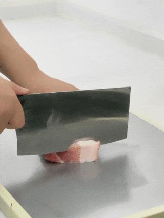 在鈦板表面無論是切削了皮的土豆還是生肉,都不容易打滑,能牢牢地“抓”住食材。