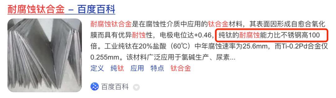 鈦有很強的惰性,表面會形成一層穩定、緻密的氧化膜。