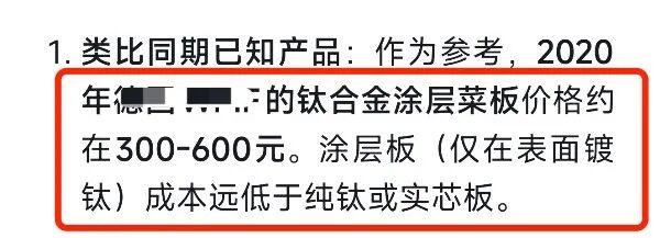 5年之前,一塊僅僅是表面鍍鈦的菜板,價格就高達300~600元。