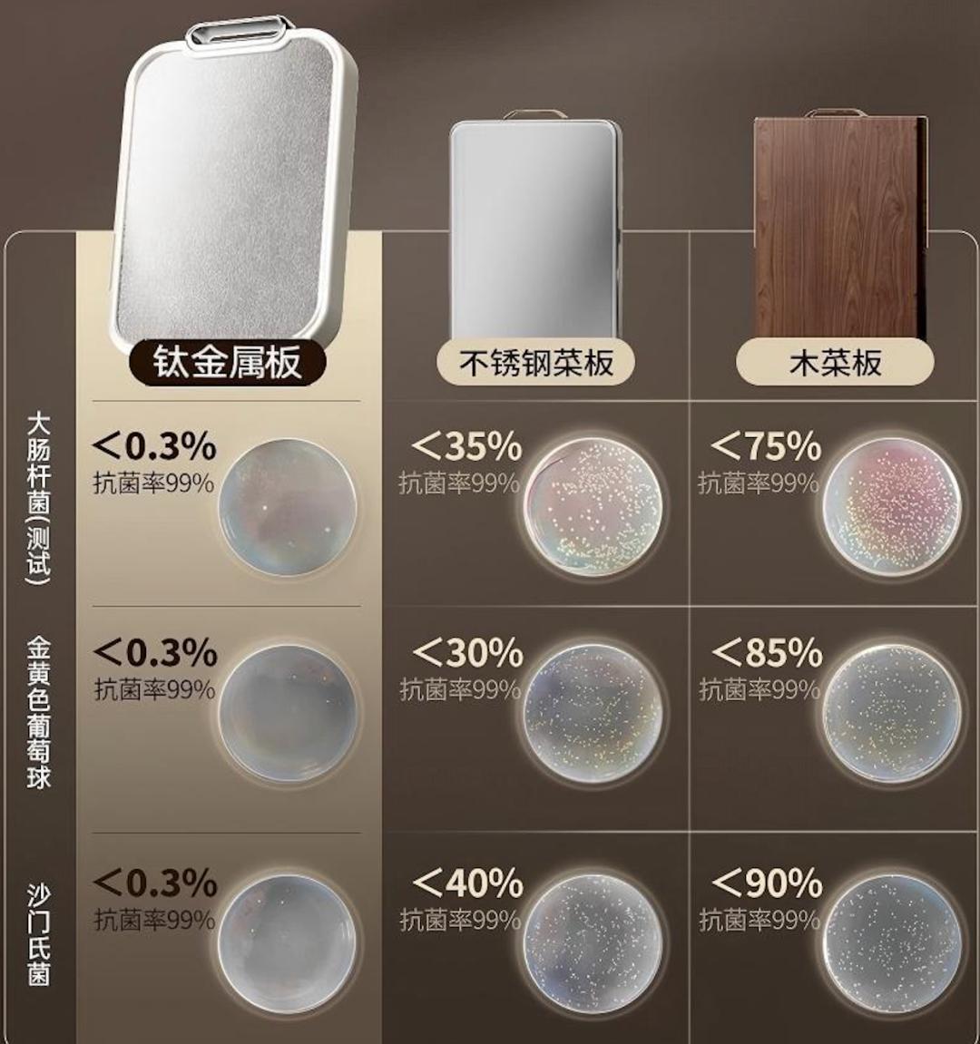當其他菜板還在要求你“勤打理、常更換”時,鈦金菜板已默默將廚房衛生標準,提升到了一個全新的維度。