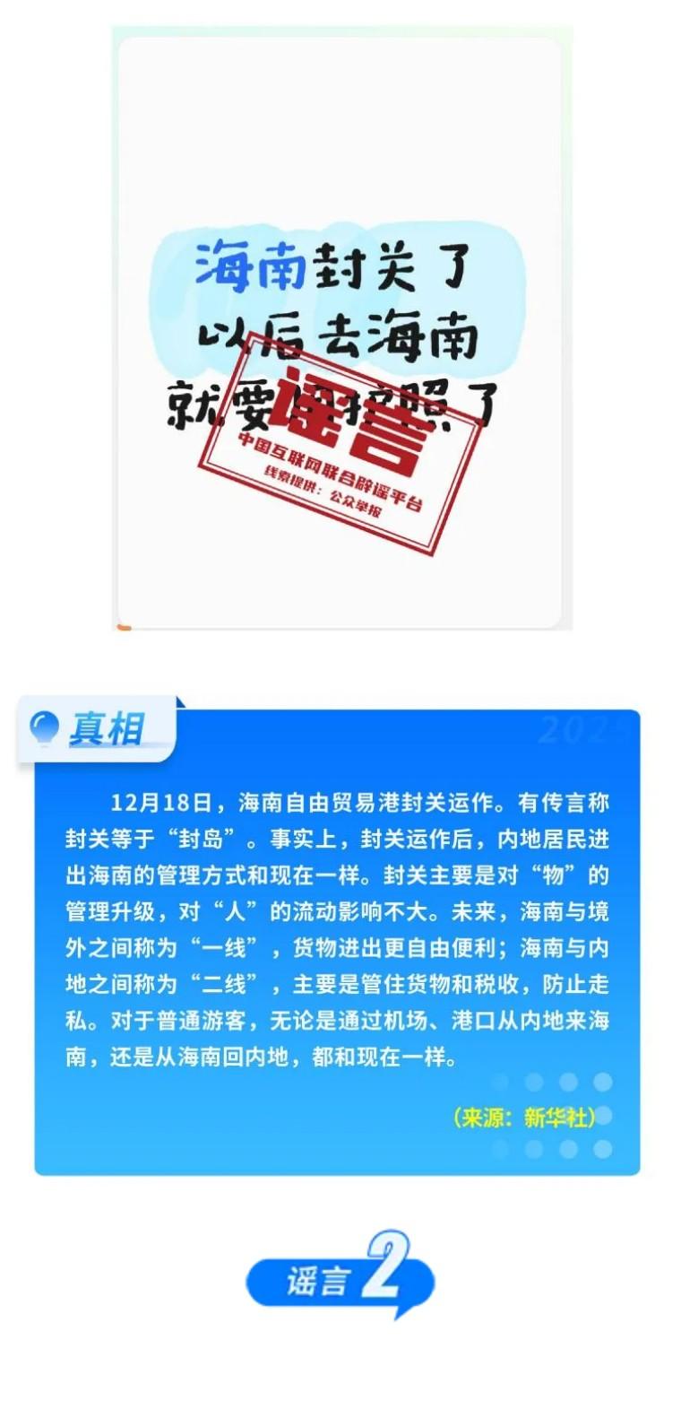 海南自由貿易港封關等於“封島”、激素蛋大量流入市場、一次性信用修復等於“信用洗白”…這些謠言別再傳了