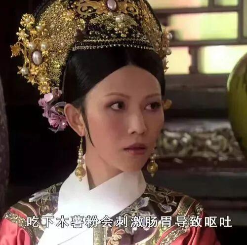 劇中,溫宜公主喫了摻進木薯粉的馬蹄羹後吐奶不止|電視劇《甄嬛傳》