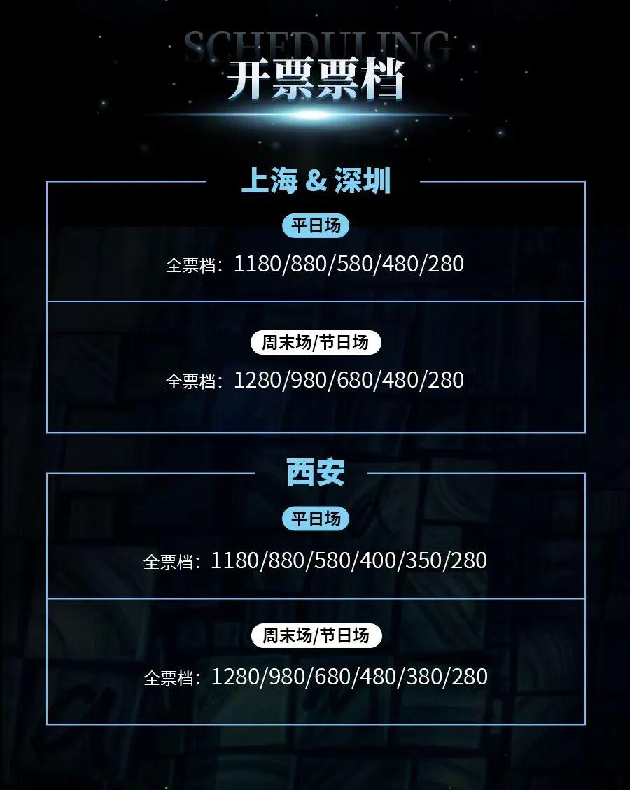 三個城市的票價範圍280-1280元,低價票檔數量有限,手慢無!