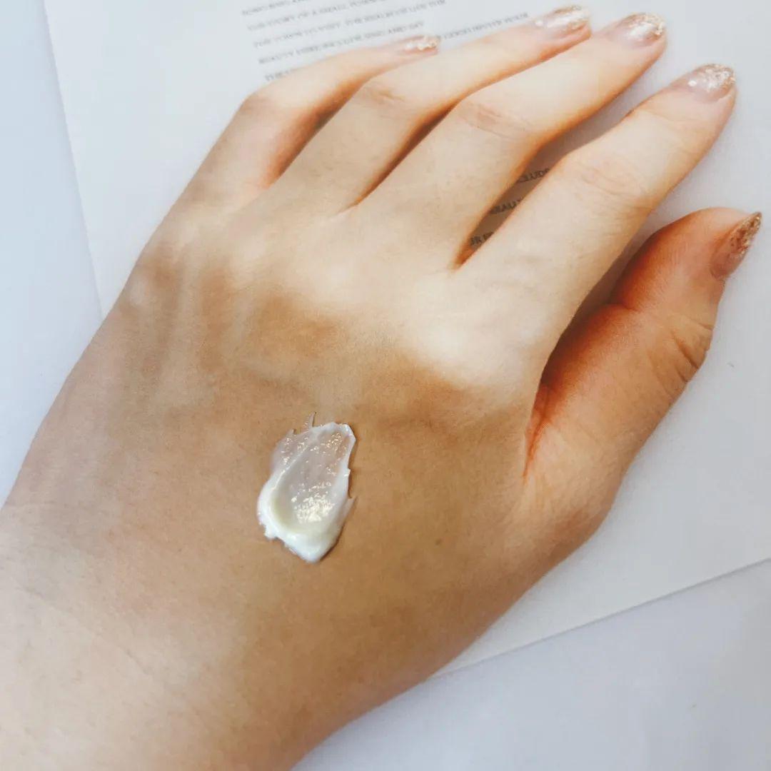 它有着乳酪般的綿密質地,挖取時觸感溫潤軟糯,塗在皮膚上輕薄細潤,輕輕一抹就能推開,吸收速度特別快。