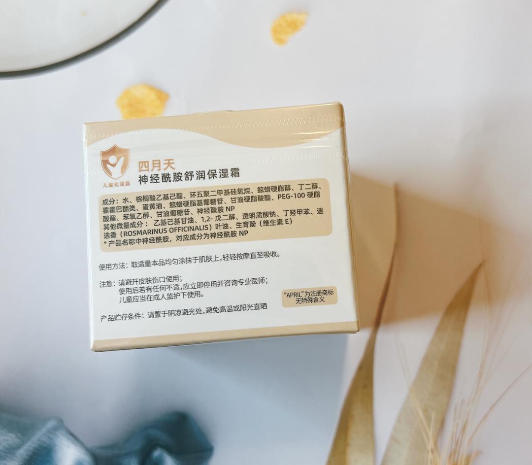 四月天這款面霜添加了充足的神經酰胺,能在皮膚表面形成保溼層,幫助肌膚維持水潤健康。