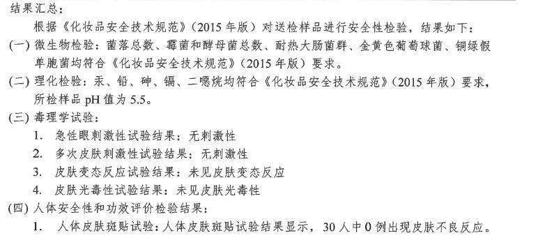 各項權威檢測數據也讓人放心:無刺激性,人體皮膚斑貼試驗中未見皮膚不良反應