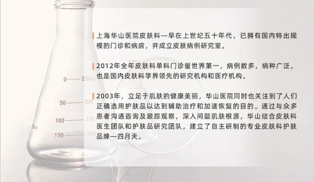 【四月天系列】由上海華山化妝品有限公司出品,而它的 “孃家” 上海華山,是國內公認的醫學翹楚。