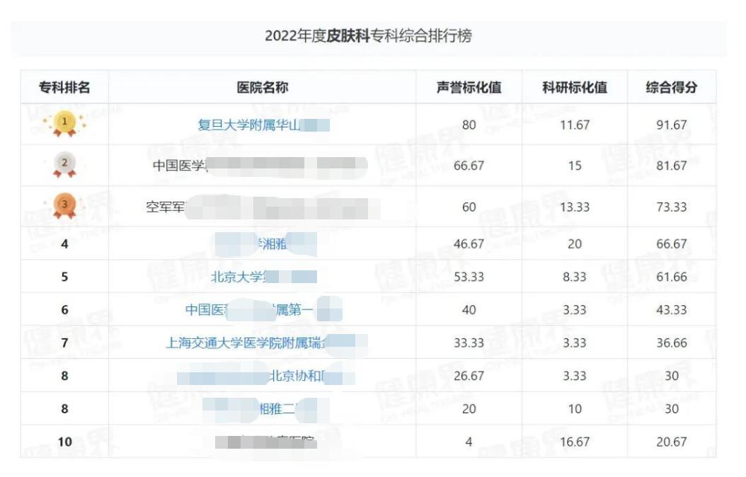 截取自網站:中國醫院排行榜