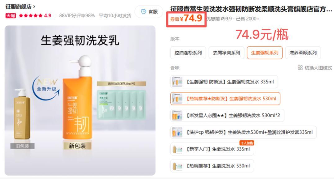 這次我們談來的福利政策也非常好!官方年貨節活動價,單瓶530ml洗髮水是74.9元。