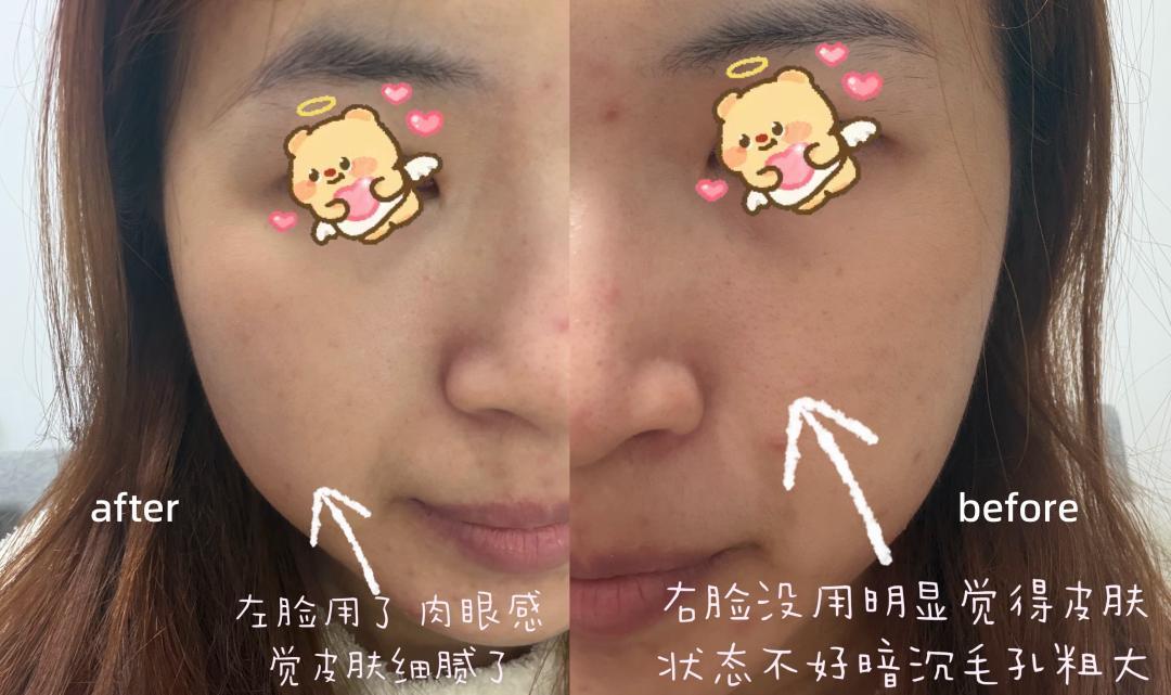 堅持用了一段時間,皮膚不容易紅紅了,摸起來滑溜溜的,肉眼看上去也細膩了許多,素顏狀態都很不錯,我個人是很滿意的!