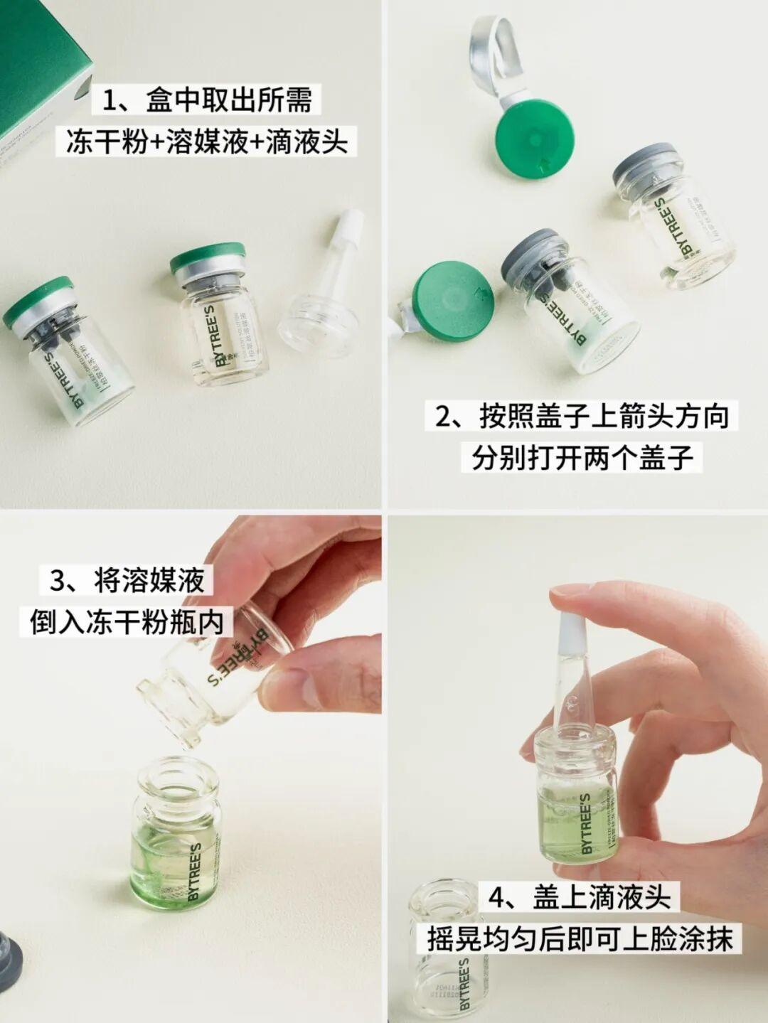 它既不是普通的水乳,也不是常規的精華、面霜,而是凍乾粉➕溶媒液的組合裝,混合搖勻後直接上臉塗抹就ok。