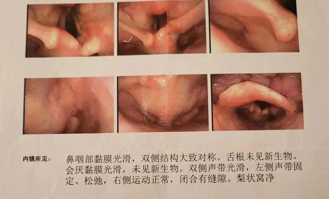 喉鏡顯示左側聲帶出了問題丨作者供圖