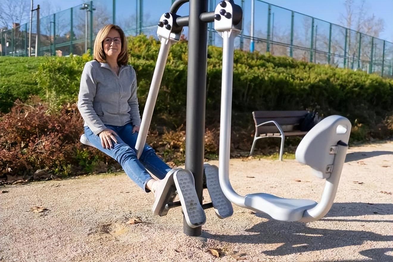 健身房橢圓機的小區“低配版”,它也是通過手腳聯動的方式讓雙腳在踏板上形成橢圓軌跡。這樣的運動非常接近跑步的動作,但相比跑步對膝關節和踝關節的衝擊要小得多。