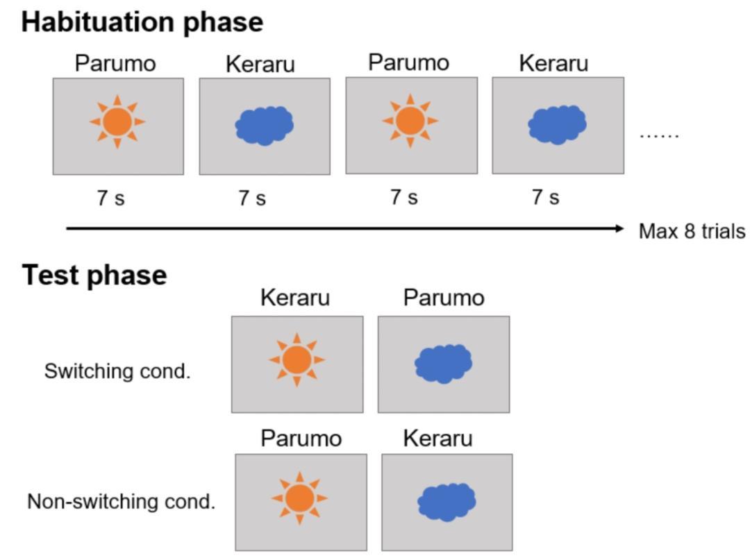 這是一個來自日本麻布大學的研究團隊,他們找來了31只貓貓志願者。在一開始的習慣階段,研究者讓貓觀看電腦屏幕上的圖片,並播放一個沒有意義的單詞:一個圖片配的單詞是“kararu”,另一個配的是“parumo”。