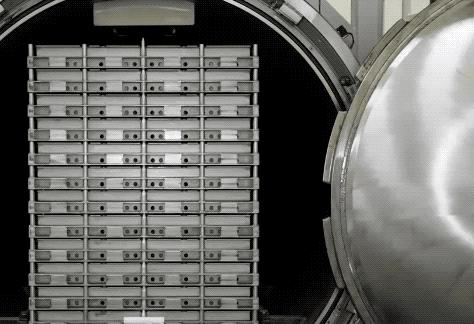 把包裝好的熟米飯送進滅菌釜裏再次高溫滅菌,出來後就大功告成!