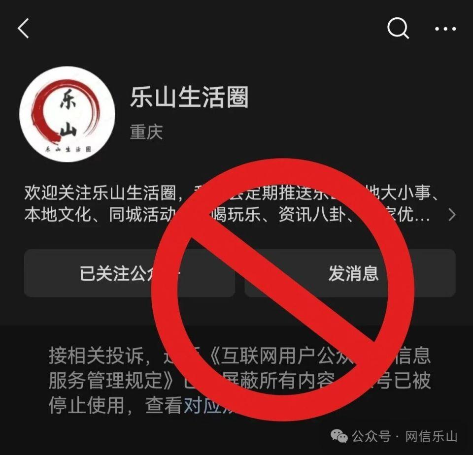 四川樂山一賬號長期違規轉載、發佈信息被依法依約關閉