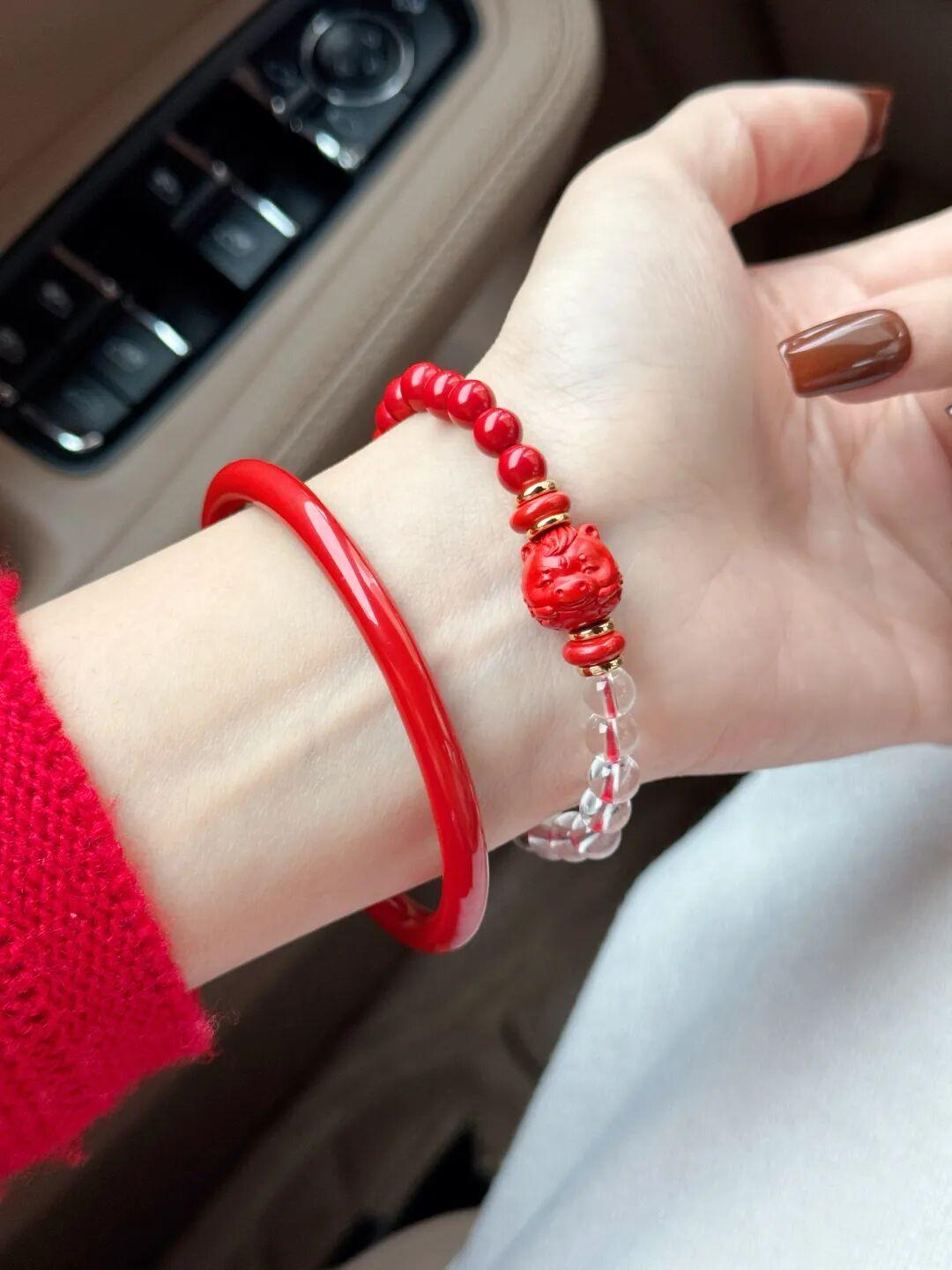 前面的款式都偏向日常百搭,若想在春節聚會、走親訪友等重要場合更有存在感,那這款硃砂手鐲絕對是壓軸之選,既能撐起場面,又能傳遞新年喜氣。