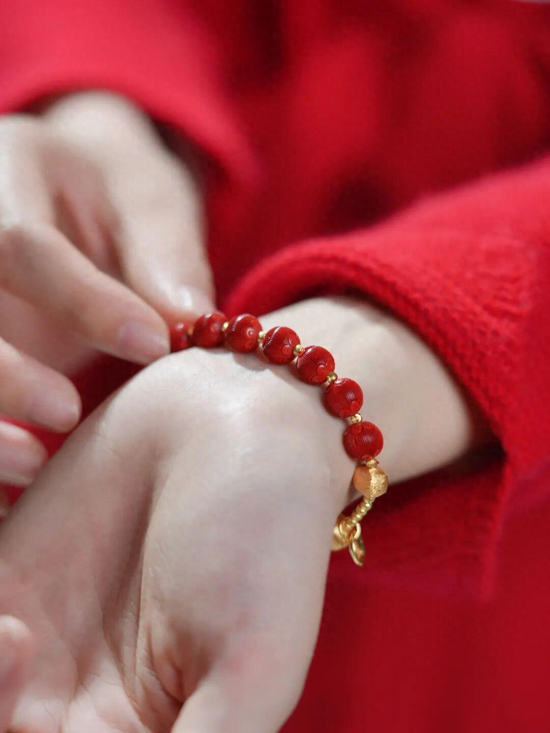 我把它留到最後推薦,正是因爲手鐲更能詮釋“一抹中國紅”的韻味,也最適配春節的隆重氛圍。