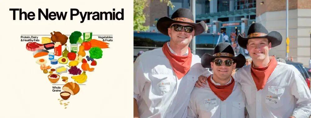 而倒三角里顯然的肉類、推薦全脂牛奶、喫牛油黃油等,不少聲音就質疑是因爲背後利益的影響,甚至是美國幾十年糖油之爭的延續,只不過這次油的一方獲得了較大勝利。而且,很難不讓人產生聯想,倒三角金字塔和紅脖子牛仔經典形象是否存在某種聯繫。
