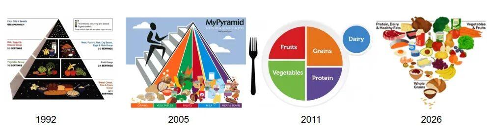 爲了應對營養與慢性病防控,以前的健康教育、膳食指南 DGA 宣傳通常都是在既有食品體系中引導公衆“做出更健康的選擇”,強調營養素比例、膳食平衡與個人責任。