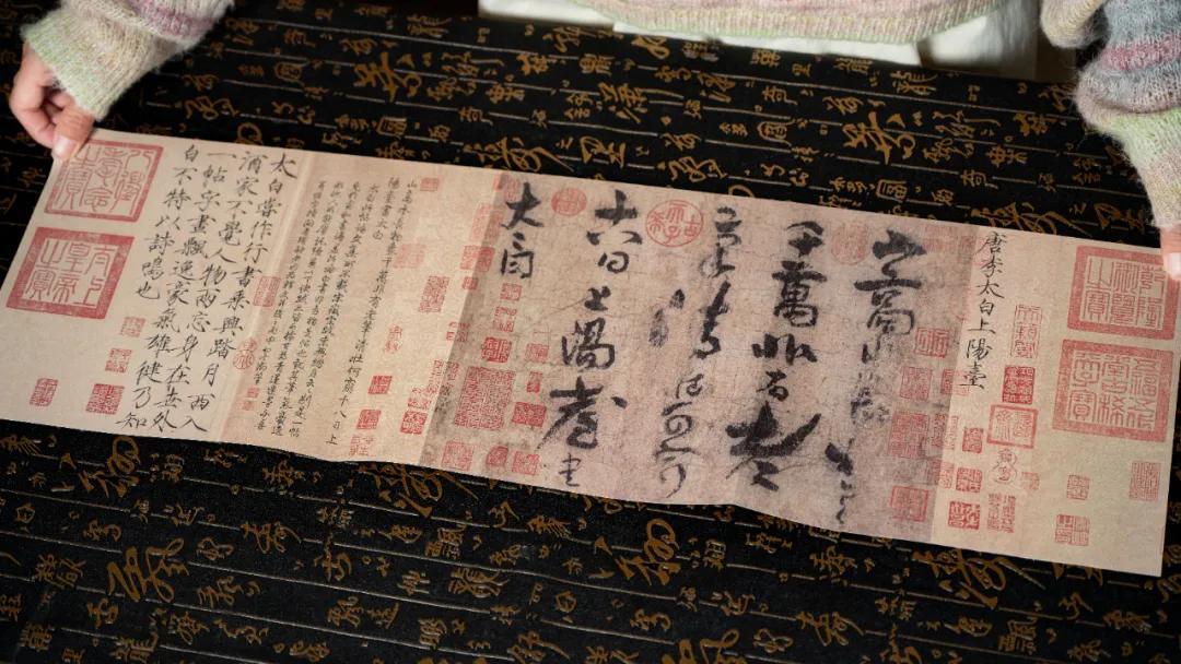 品《上陽臺帖》真跡拉頁,墨色淋漓間,詩仙的筆意性情躍然紙上。