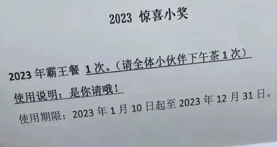 某公司的“驚喜小獎”要求中獎者請全體同事下午茶,重新定義了“霸王餐”。