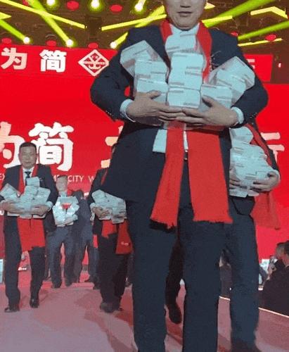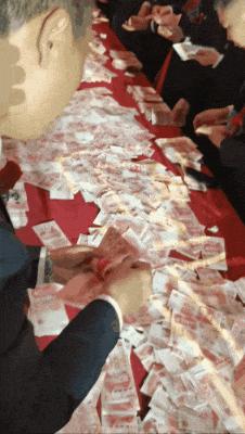 在該公司2024年度年會上,數十名員工分成兩列,站在一條長桌邊,桌上擺放着總計6000萬元的現金,他們在規定時間內,數多少現金就能拿多少。