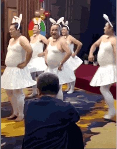 看着這些“舞娘”在臺上旋轉跳躍,臺下的觀衆只想“暫時把眼睛閉了起來”。