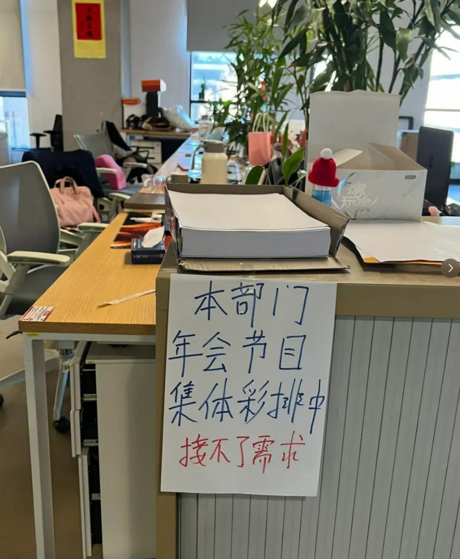 排練節目需要佔用時間精力,爲KPI發愁的打工人,不得不抽出時間來排練,這讓原本就不夠用的工作時間更加緊張,更有甚者還要佔用午休時間甚至下班時間。