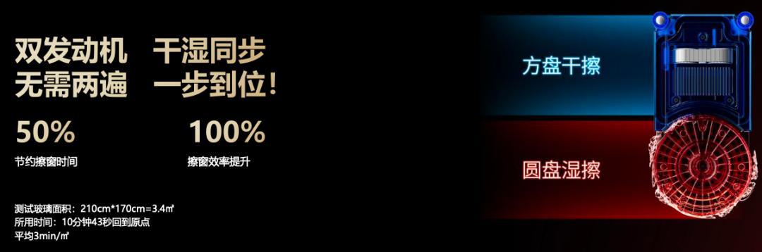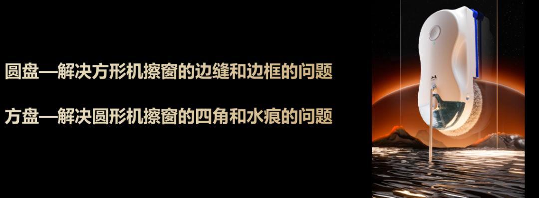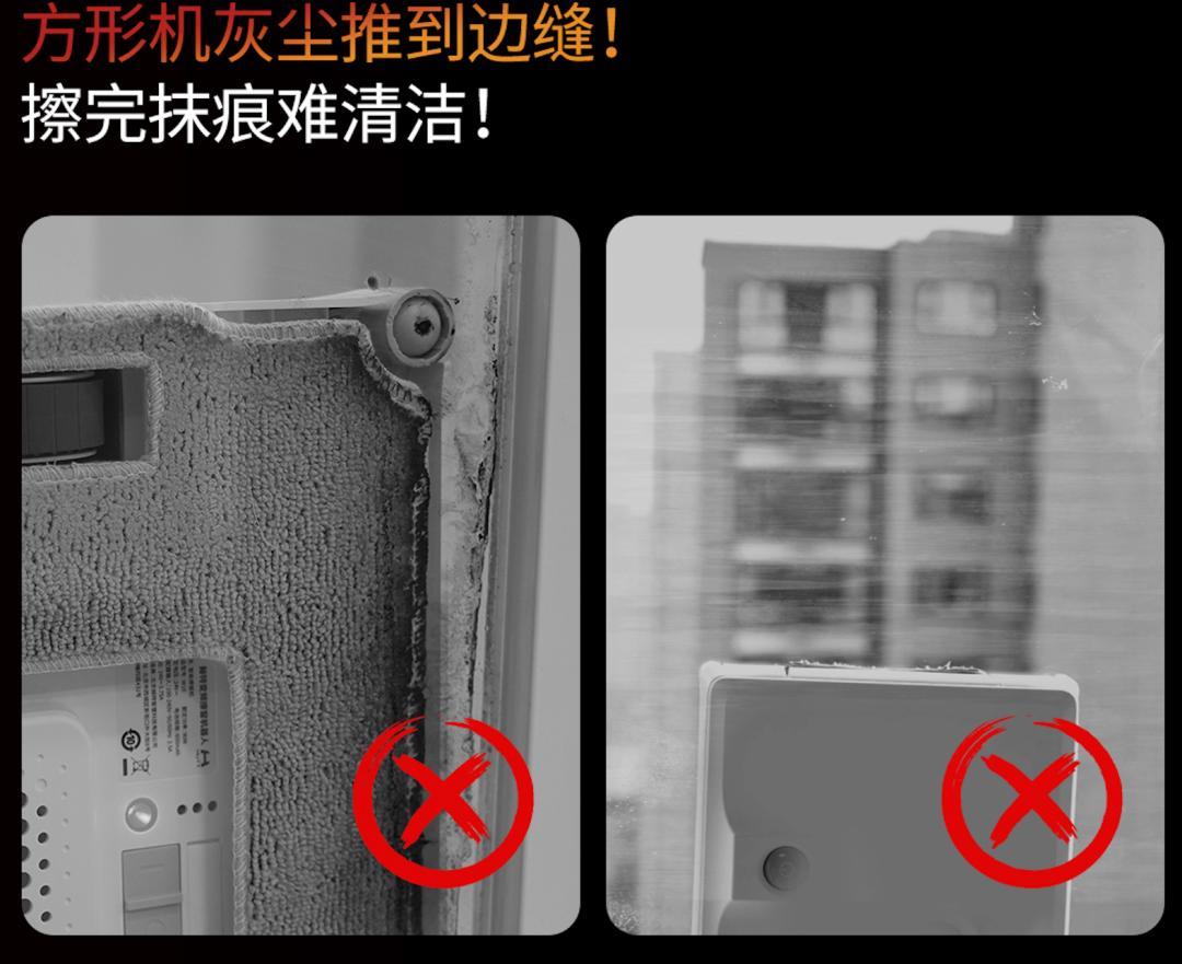 而且大家看下它的設計,這是首研的【方圓一體】擦窗機器人,杜絕多遍擦拭,不留水痕!