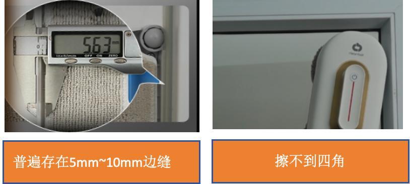 以前的擦窗機器人外殼太厚,擦布不能緊緊貼邊擦灰,所以赫特將底盤外拓出1cm,並內置SAC沿邊清潔算法模塊,窗戶邊縫都能被擦布抹掉。