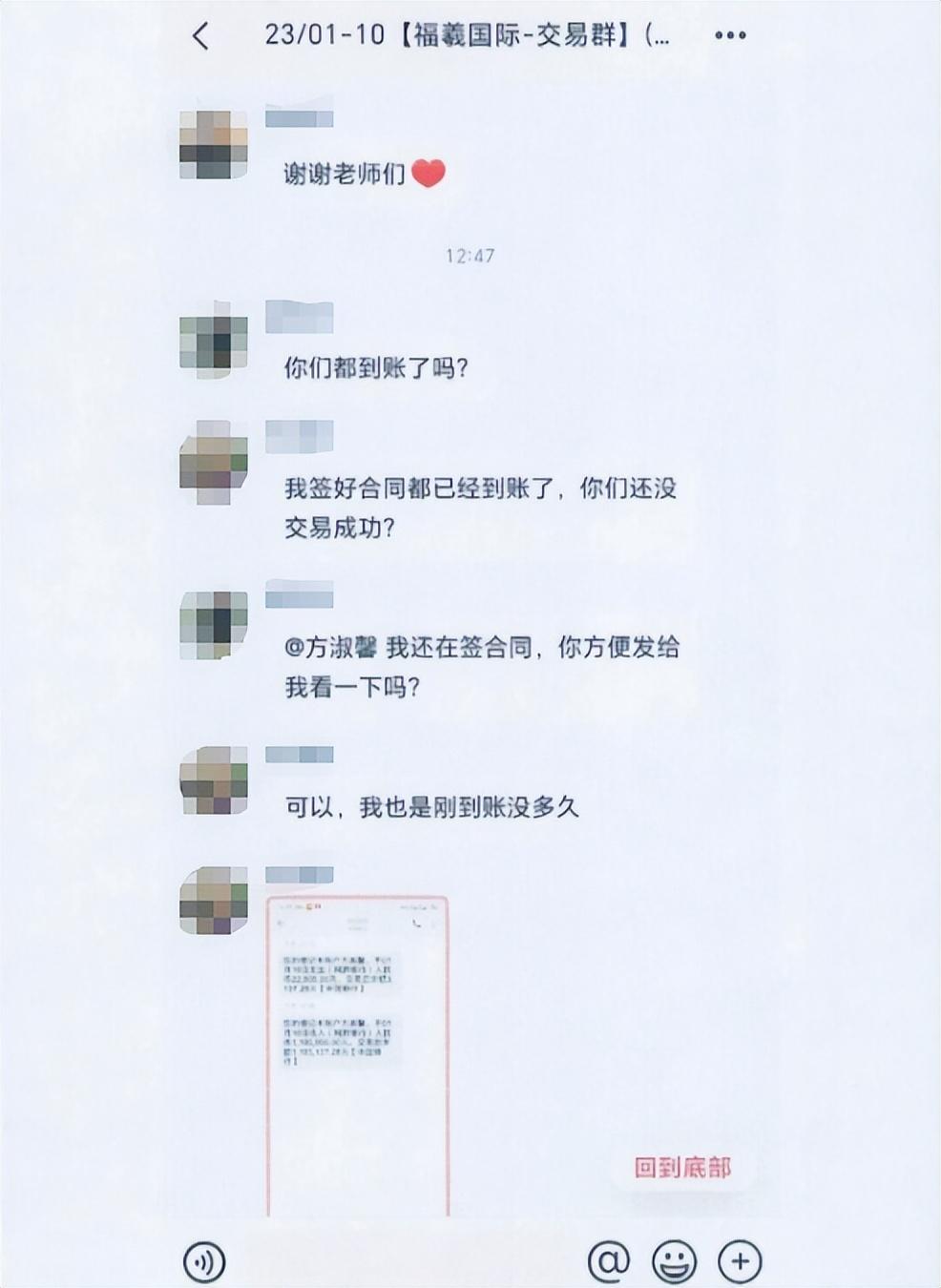 羣內不斷有成員發佈拍賣獲利到賬的銀行截圖與感謝信息,並主動@李女士進行勸說,營造出“人人賺錢、平臺可靠”的氛圍。