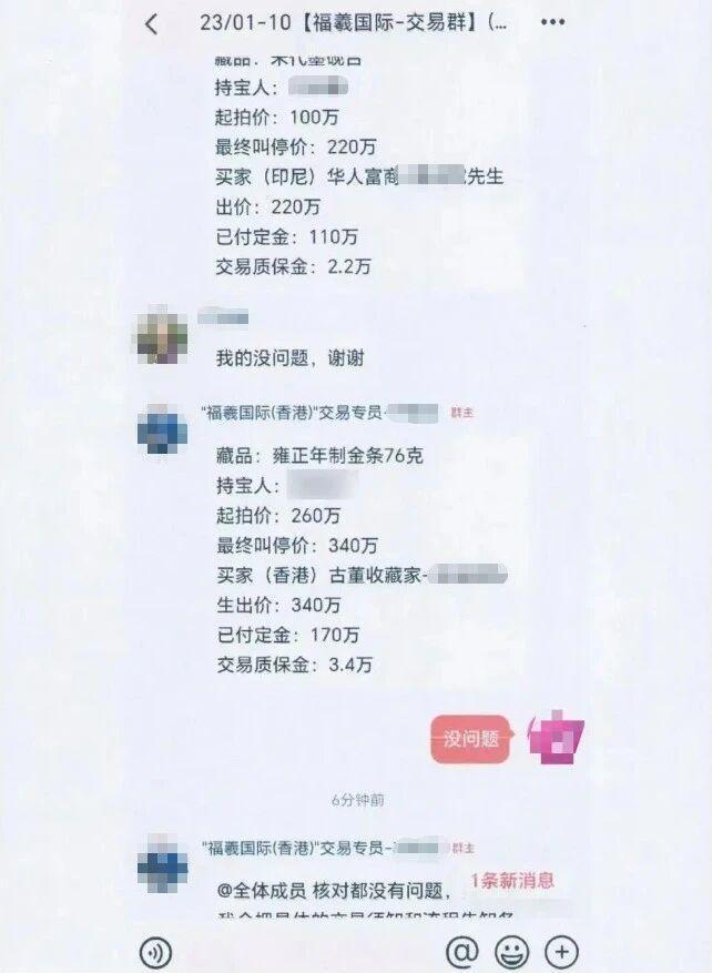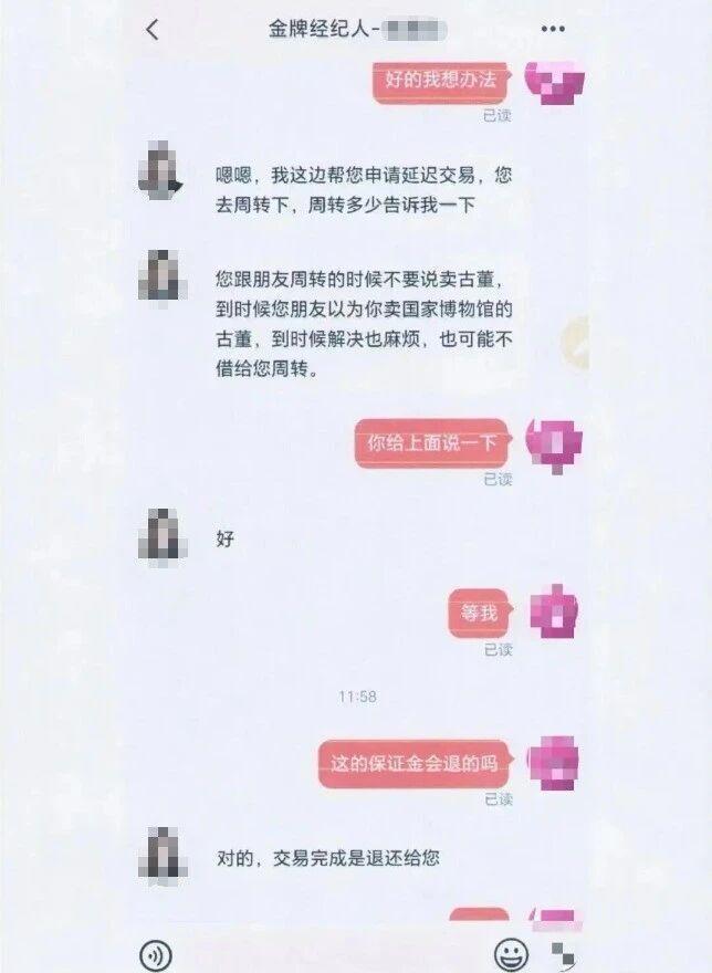在羣內觀察幾小時後,李女士已然心動。一個名爲“金牌經紀人”聯繫李女士,稱可爲其開通“專屬拍賣通道”,李女士表示接受。