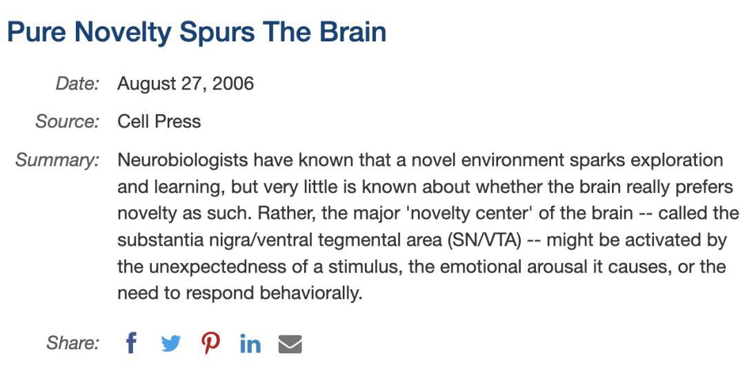 [1] Cell Press. Pure Novelty Spurs the Brain[J]. Science Daily, 2006.