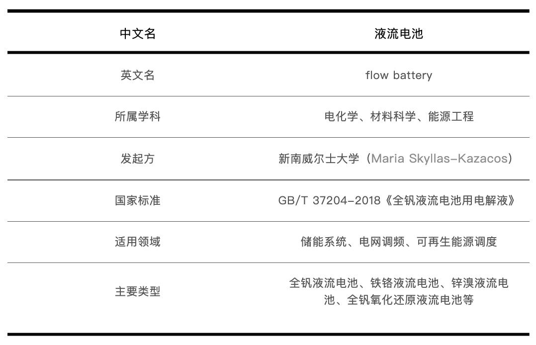 液流電池(flow battery)是一種新型可充電電池,其能量儲存在電解質溶液中,通過電解質在電池內部的流動與電極反應實現能量的存儲與釋放。液流電池有多種類型,其中,全釩液流電池被認爲是現階段最成熟的液流電池類型,已經進入了商業化階段。