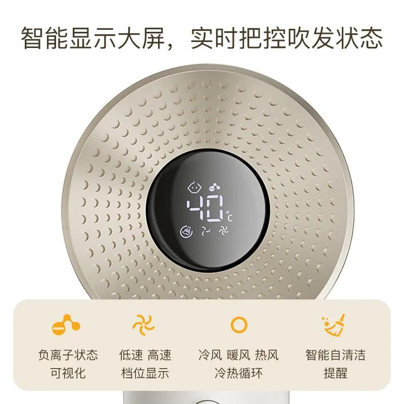 百斯騰YH2吹風機還自帶一個智能顯示大屏,能實時顯示模式、風量,顯示智能自清潔提醒,很方便。