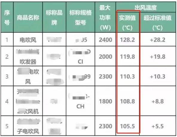 △ 上海市消保委: 出風溫度超過100℃的5件樣 品