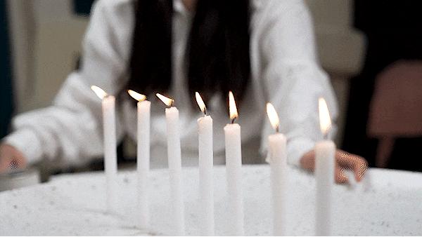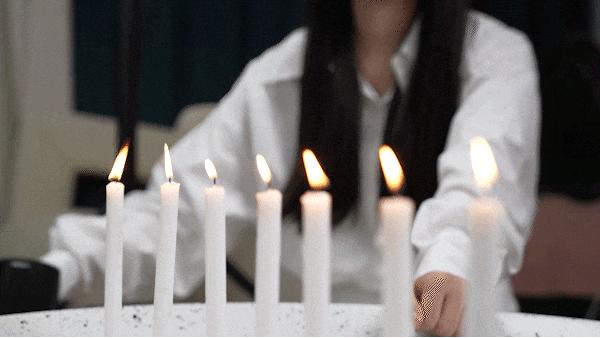 對比吹蠟燭速度,每根蠟燭擺放間隔10cm的距離, 高速吹風機直接一整排吹滅且速度超快。