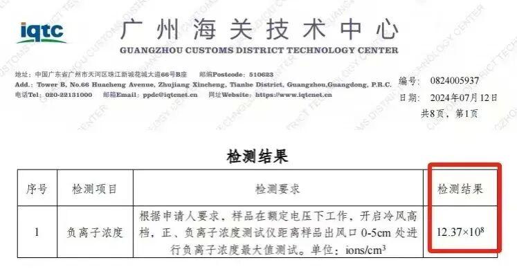 百斯騰YH2吹風機的負離子濃度高達12.37億,遠超市面的2-5億負離子高速吹風機!(數據由廣州海關技術中心檢測報告得出)