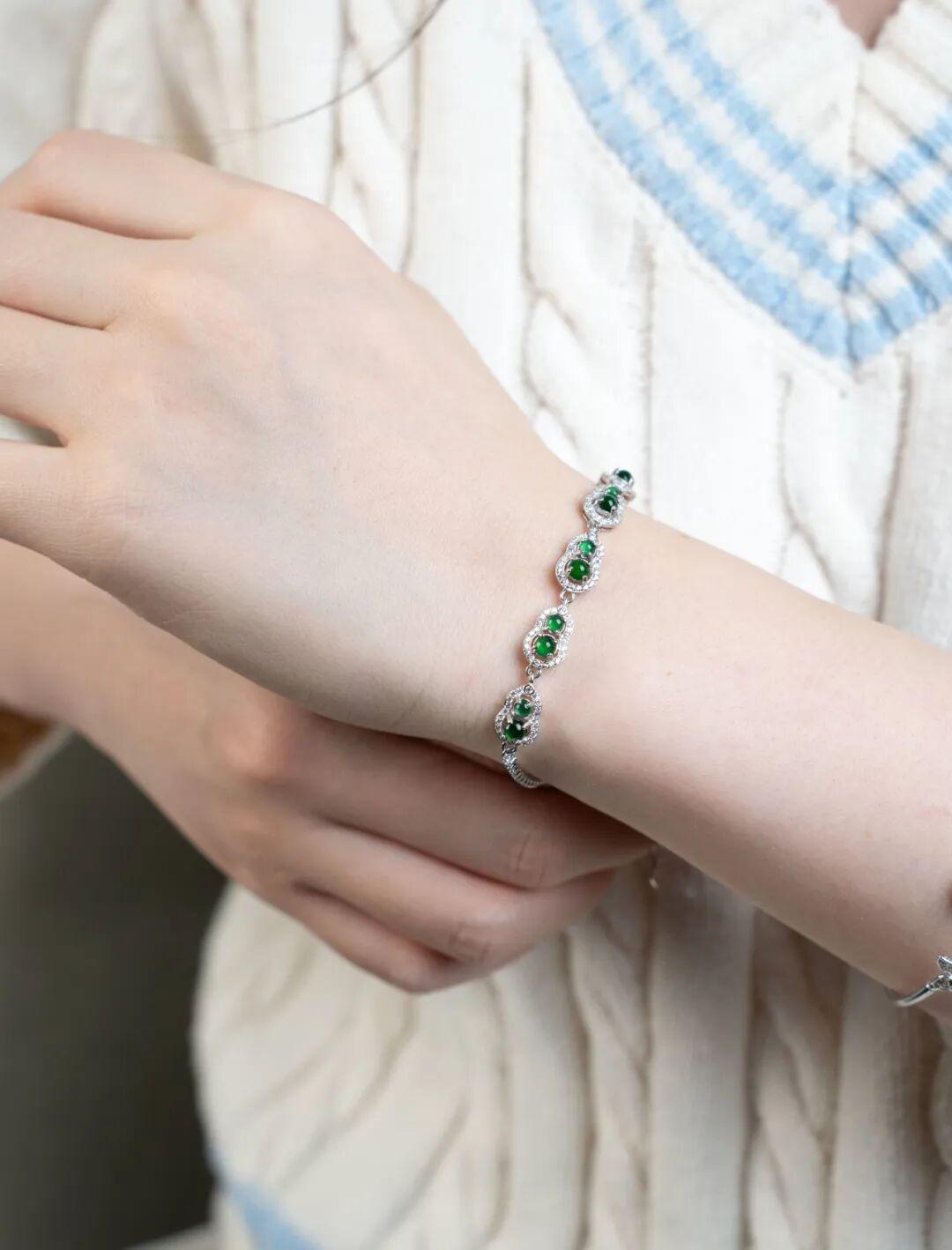 戴在手上頗具有張愛玲詩句: “翡翠華貴淑女嬌,春風拂柳展妖嬈”的風雅!