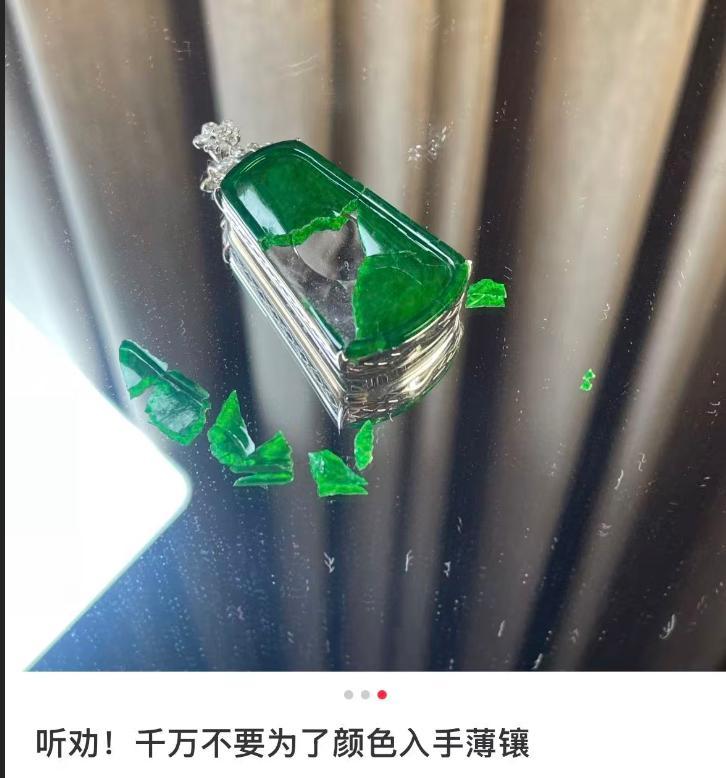翡翠市場魚龍混雜,爲了低價拉客,直播間也湧現了一種“便宜雞蛋殼”首飾。很多不良商家將翡翠內部挖空,只留一層薄薄弧起的“外殼”來賣,肉眼看很好,但是翡翠內部一旦被挖空,就會“一碰就碎”,只能大呼“被騙了!”