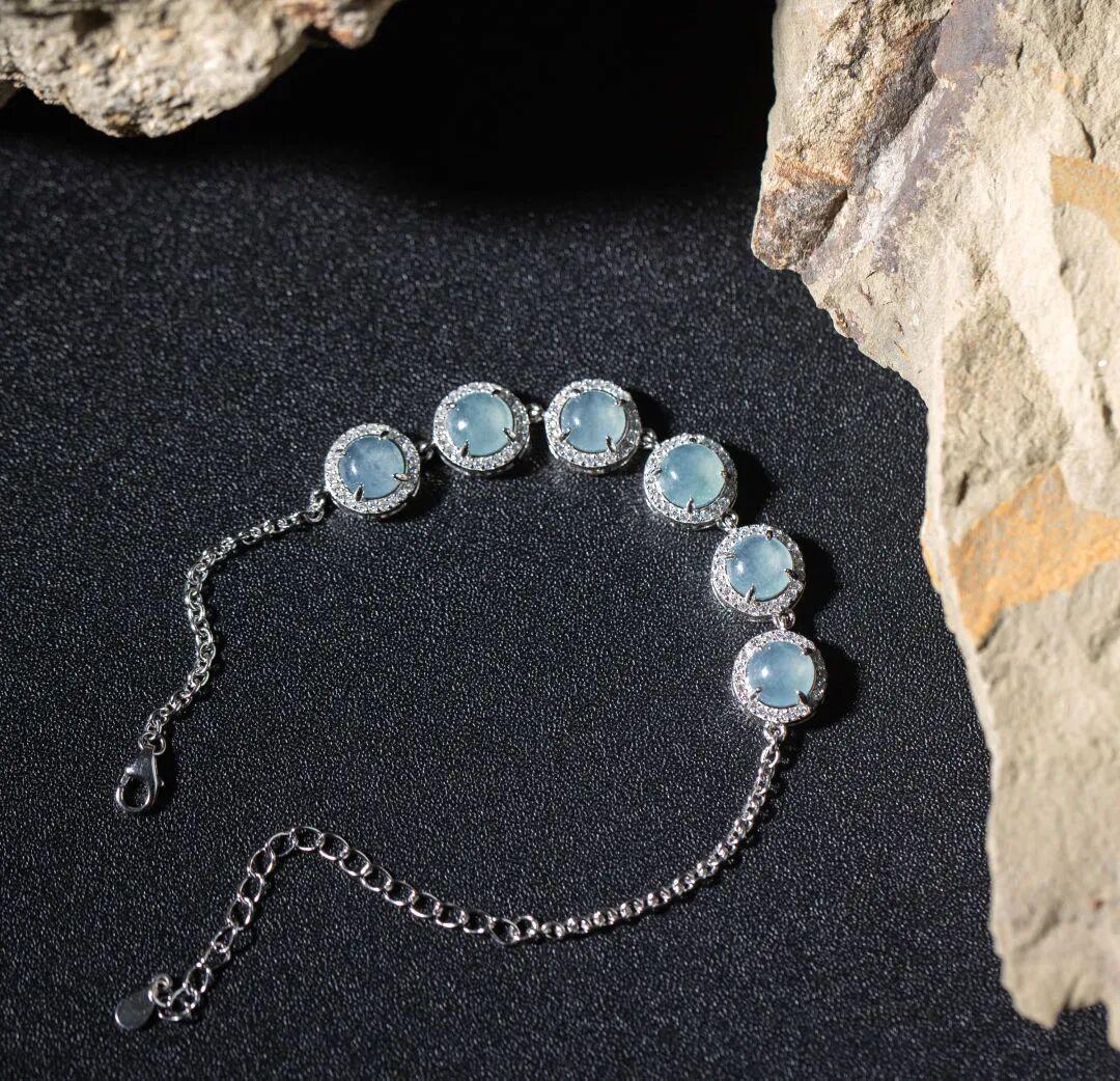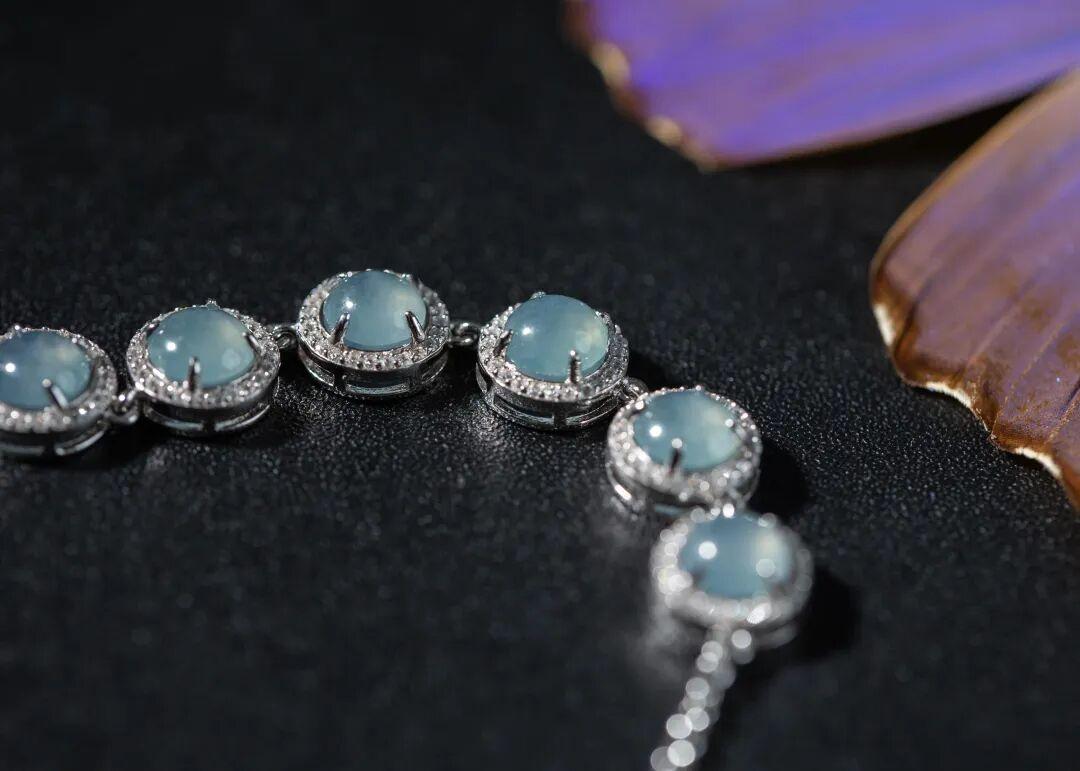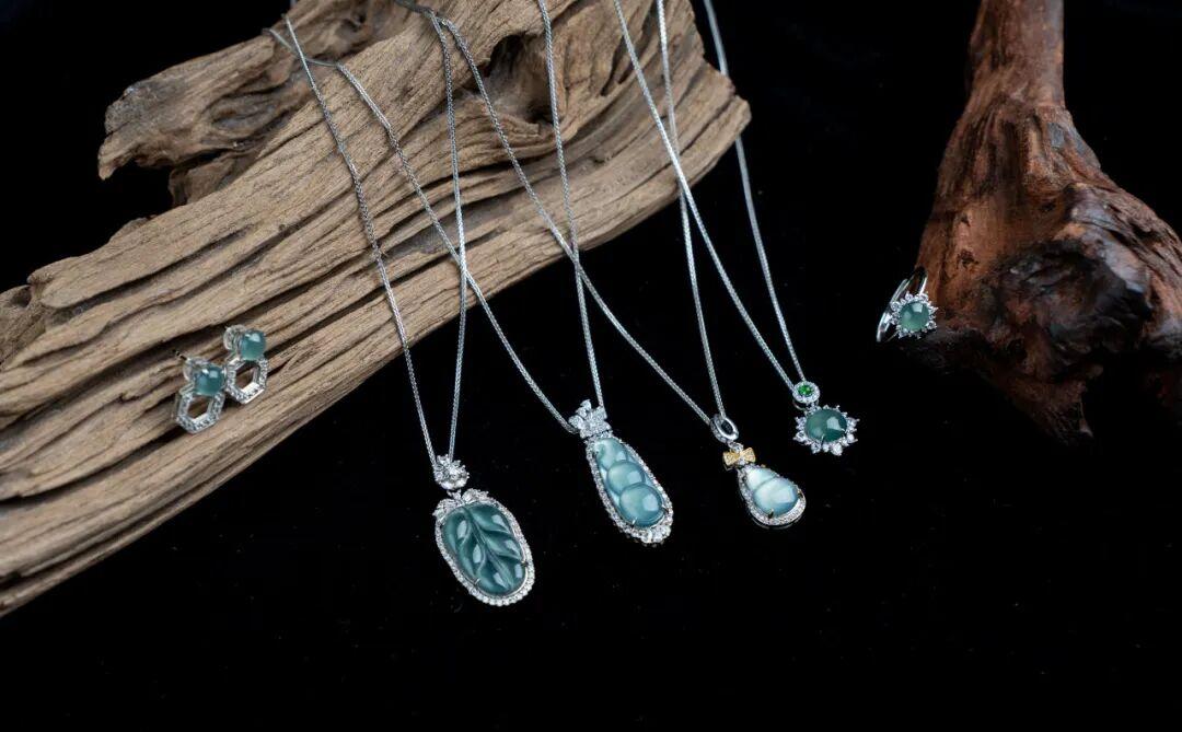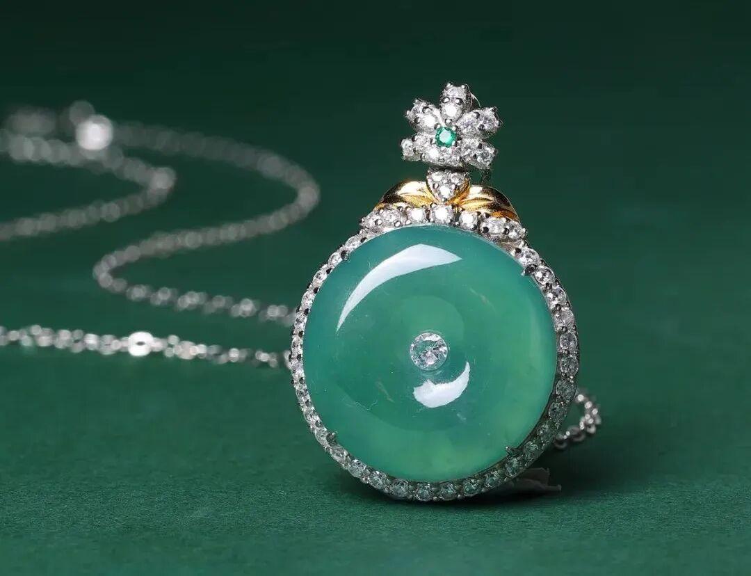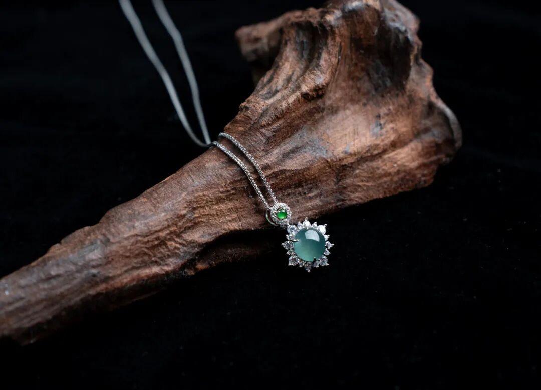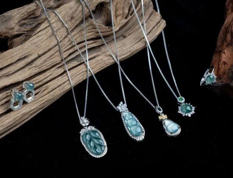 藍水翡翠有種神奇的魅力,它的藍似雪後天晴,似清澈海水,寧靜、清澈、浪漫,佩戴在身有一種冷靜與淡然的美感。