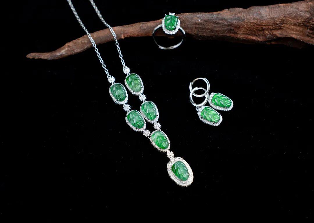 所以我們談下了【滿庭芳】·危料綠翡翠葉子首飾套裝!