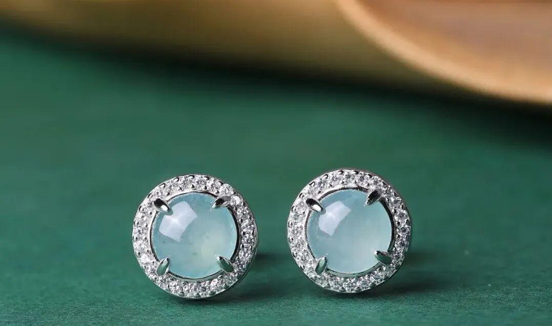 翡翠·高冰蛋面耳釘