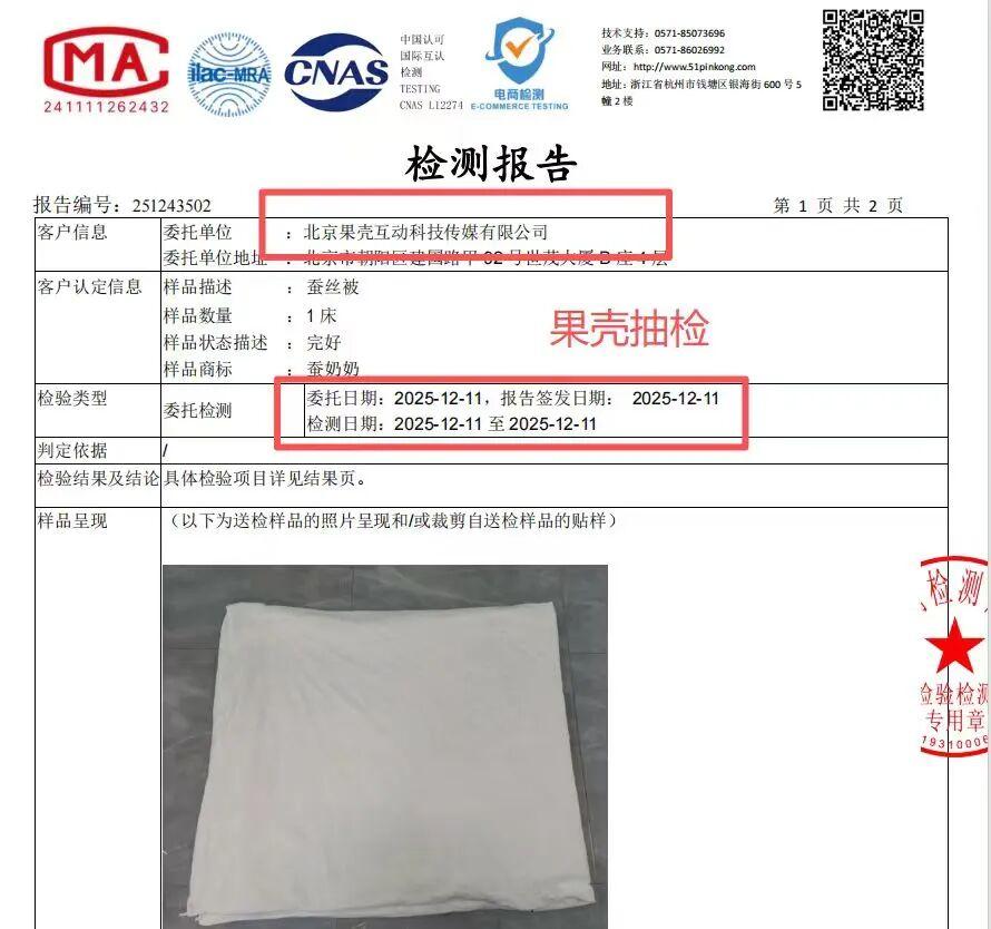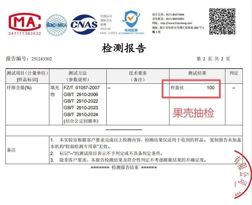 不愧是用了俗稱“蠶絲天花板”的東北寒帶蠶絲,且是100%柞蠶絲填充!這是我們特意去做的抽檢,讓大家買得更安心。