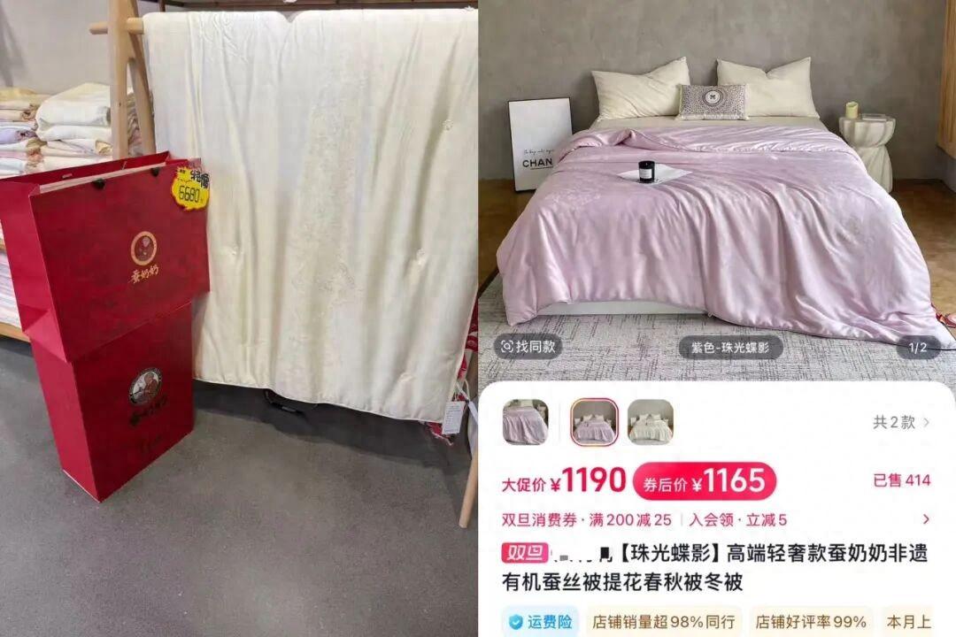 我還特意去淘寶搜了,差不多品質和填充量的蠶絲被,售價也得賣5500+!