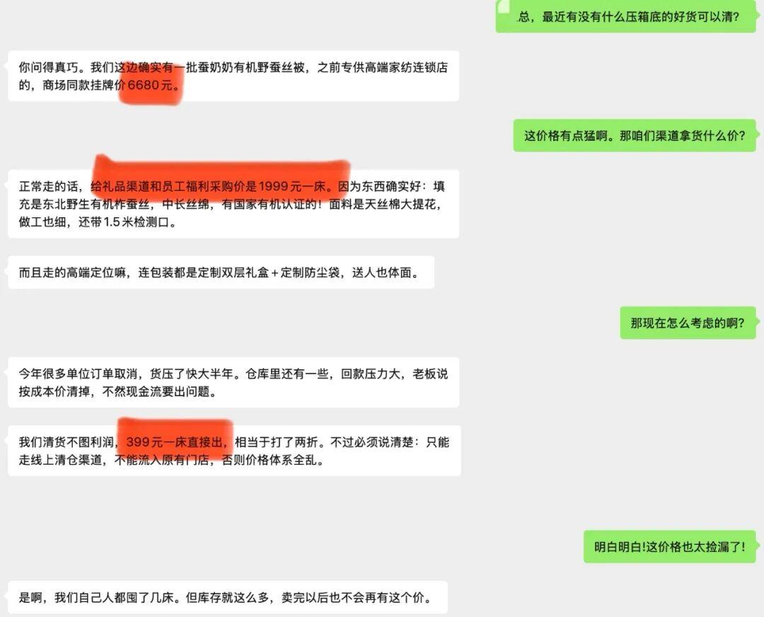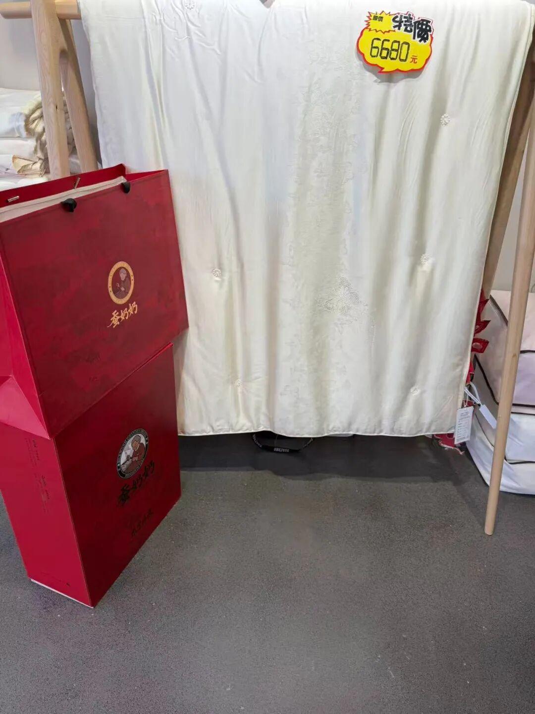 給大型單位禮品渠道,線下像樣的家紡門店得賣到6680,三層重磅包裝(禮袋、禮盒、內裏收納袋)的蠶絲被!