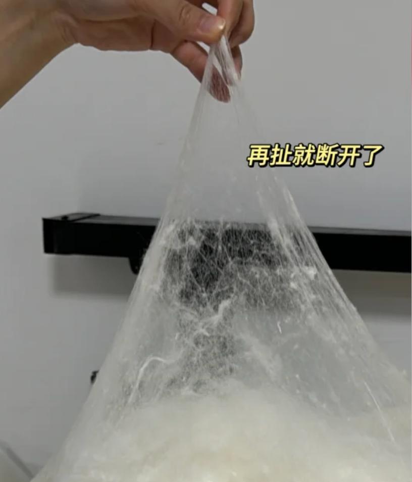 拉開被子底下的檢測口,潔白有韌性的蠶絲直接看得到!
