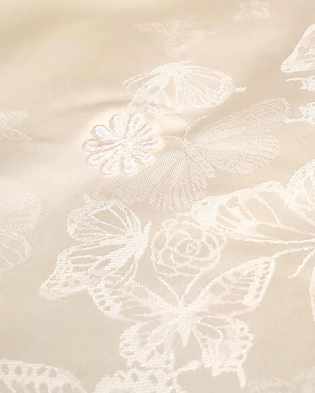 提花紋路精緻得像博物館裏的刺繡~陽光底下看過去,還泛着淡淡的珠光,質感絕了!