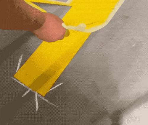 有的時候沒有上述趁手工具,我們也有個更簡單和取巧的方法,畫畫的同學都知道......要想噴漆規整,就先用膠帶在地面貼上外輪廓,然後在裏面填充漆料。
